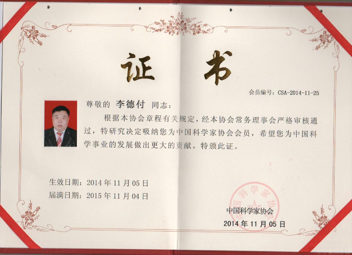 熱烈慶祝我公司李德付經(jīng)理成為中國科學家學會會員